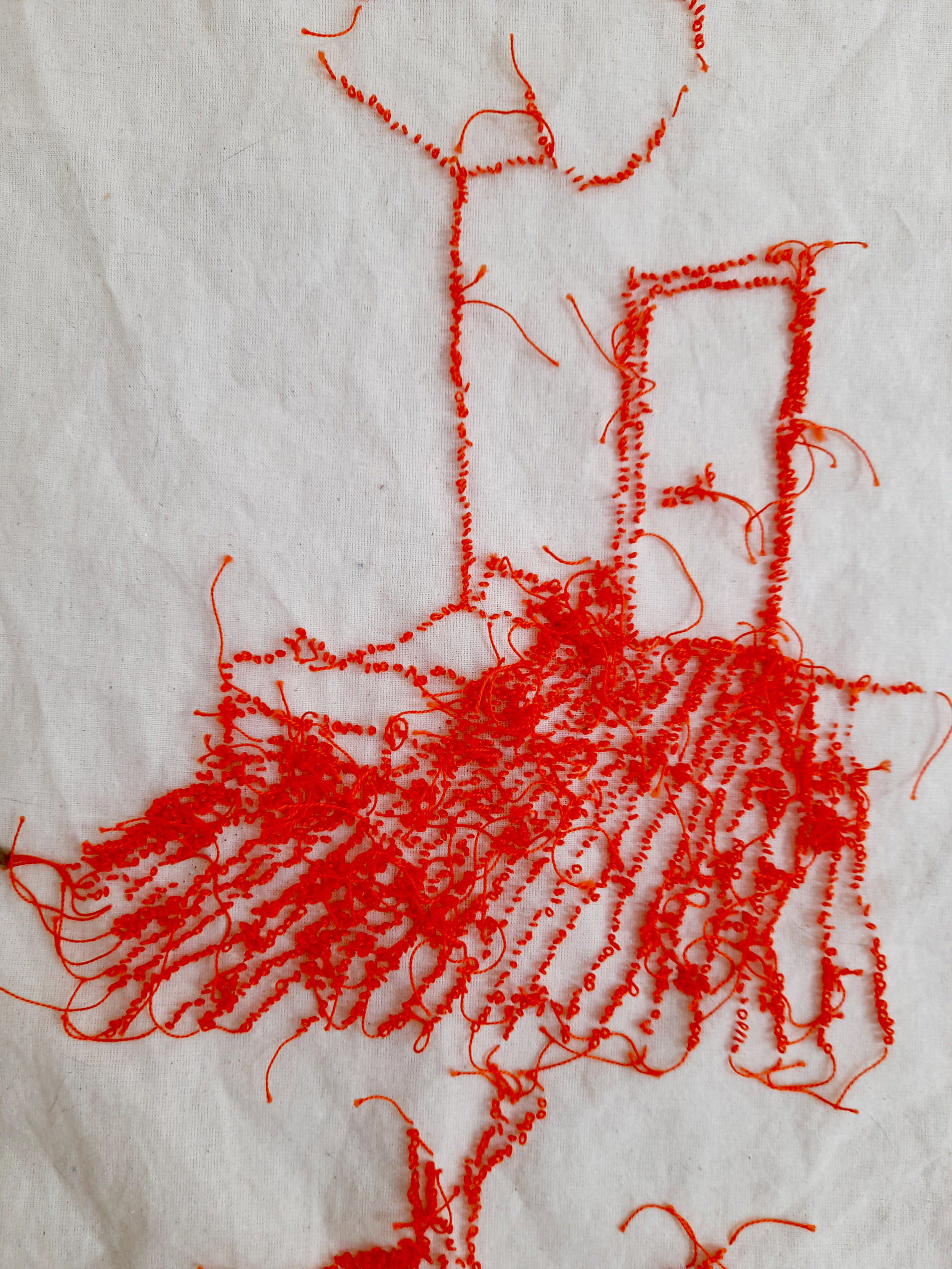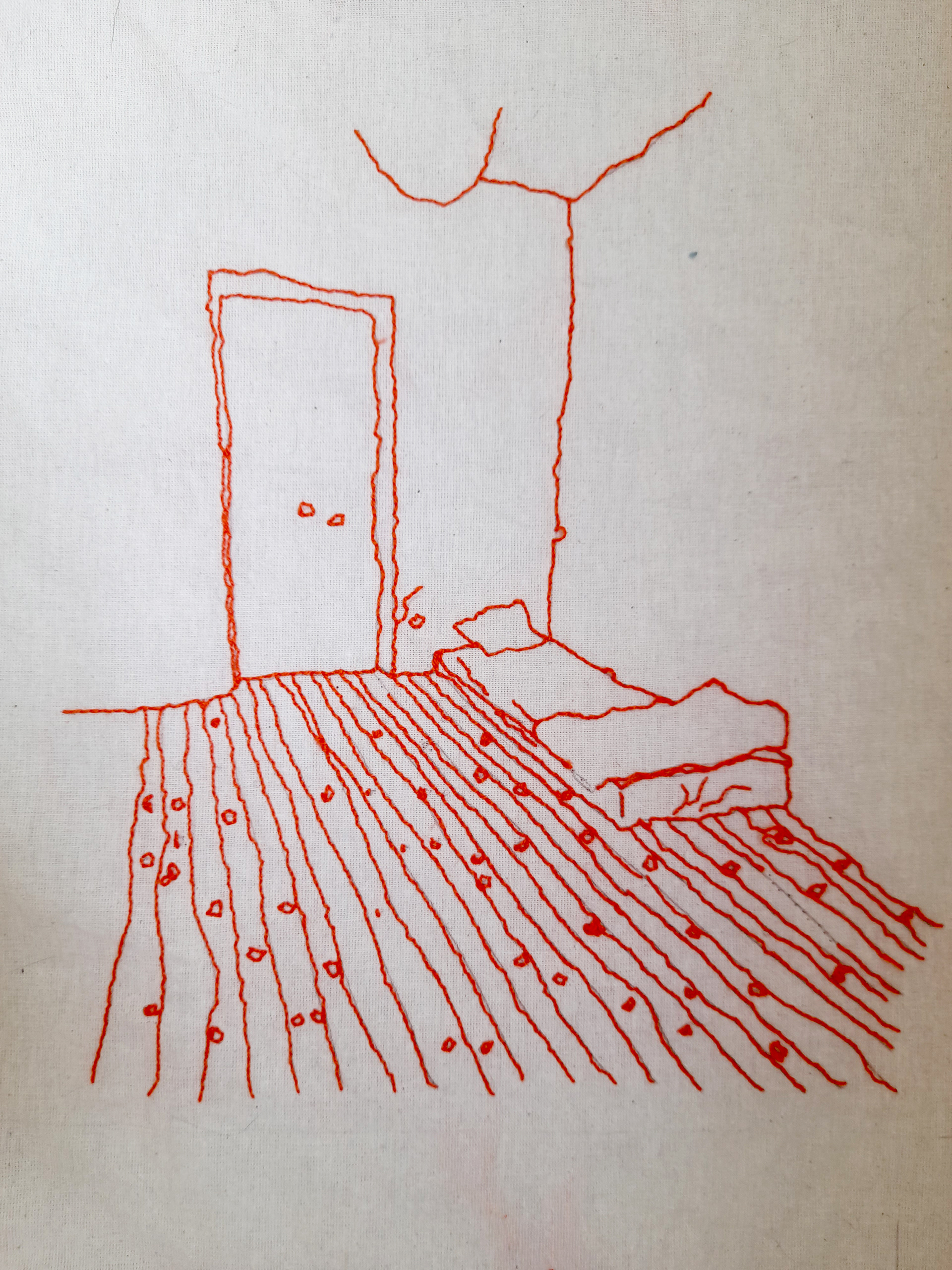 Memories explores personal memory through the intersection of architecture and handcraft. Using a minimal line language, the series translates fleeting sketches on paper into permanent, tactile records on fabric. The visual language merges analytical architectural thinking with the organic nature of embroidery.