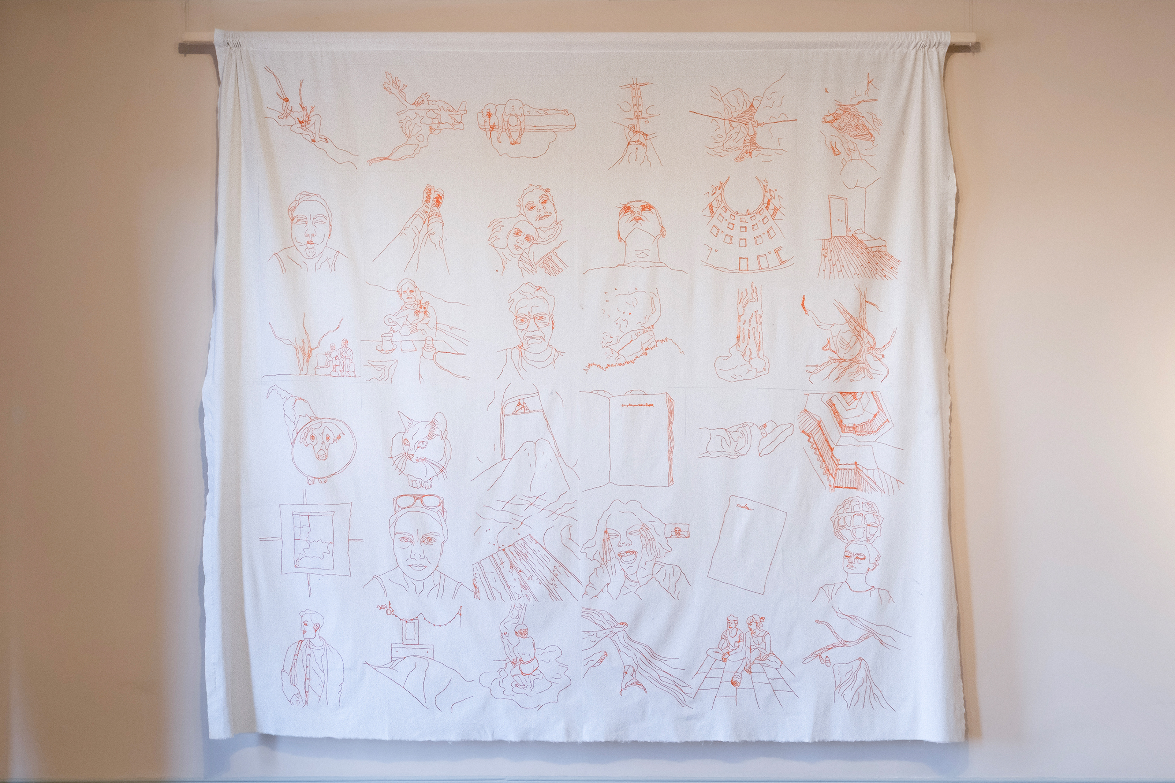 "Hatıralar / Memories'' (front side), punch needle embroidery on unbleached cotton fabric, 210 x 250 cm, edition 1/1, 2025. Lokal 02 Group Exhibition, Eldem Art Space, Eskişehir, Photo: Esra Eldem